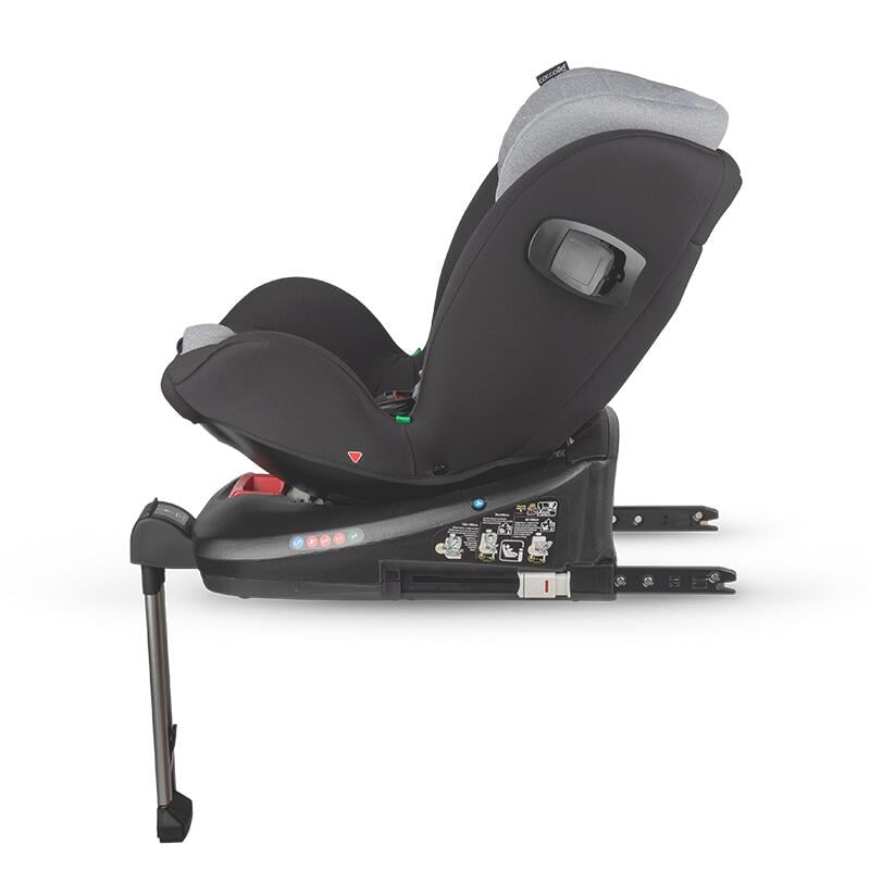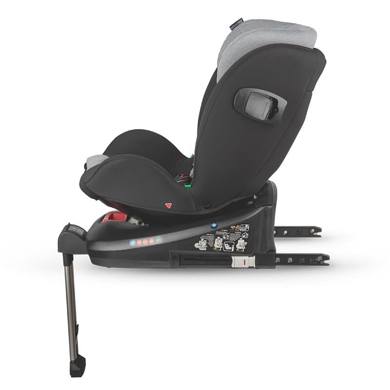 Produsul este echipat cu sistem de rotatie 360 grade, pentru o mai usoara schimbare a directiei scaunului, dar si pentru momentul in care trebuie sa asezati sau sa scoateti bebelusul din scaun. Un astfel de sistem este de mare ajutor indiferent de varsta celui mic si reduce din stresul cauzat de calatorii. Reamintim parintilor ca singurele doua pozitii recomandate in timpul conducerii autoturismului sunt cele cu fata sau spatele la sensul de mers (in functie de varsta si greutatea copilului), pozitia de rotire catre portiera putand fi utilizata doar in momentele de repaos, pe loc.