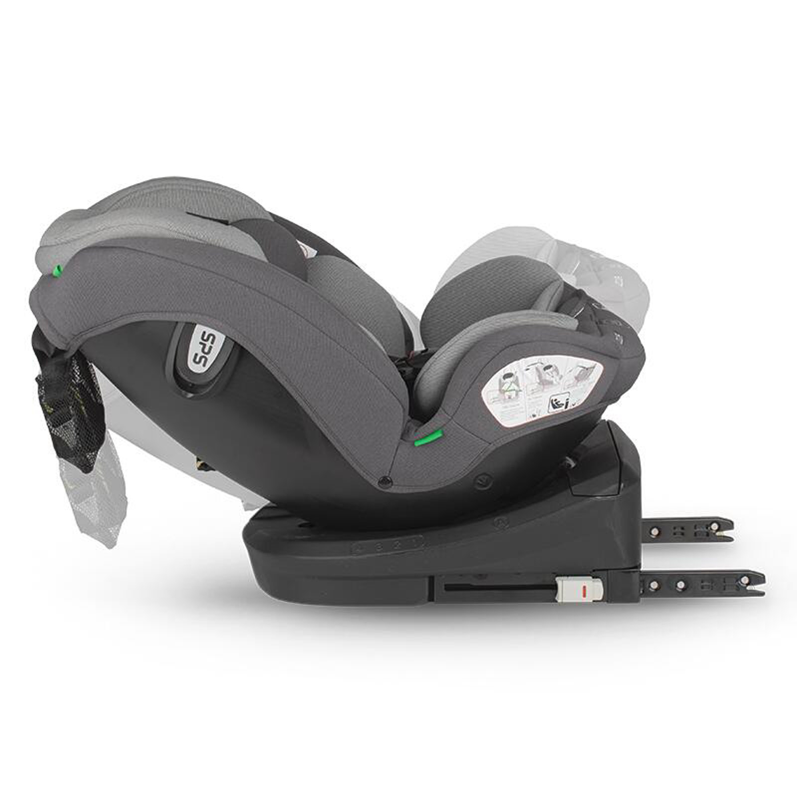 - 4 pozitii de ajustare pe spate cu fata la sensul de mers, dupa reglarea centurilor si a tetierei pentru inaltimea de 105 cm