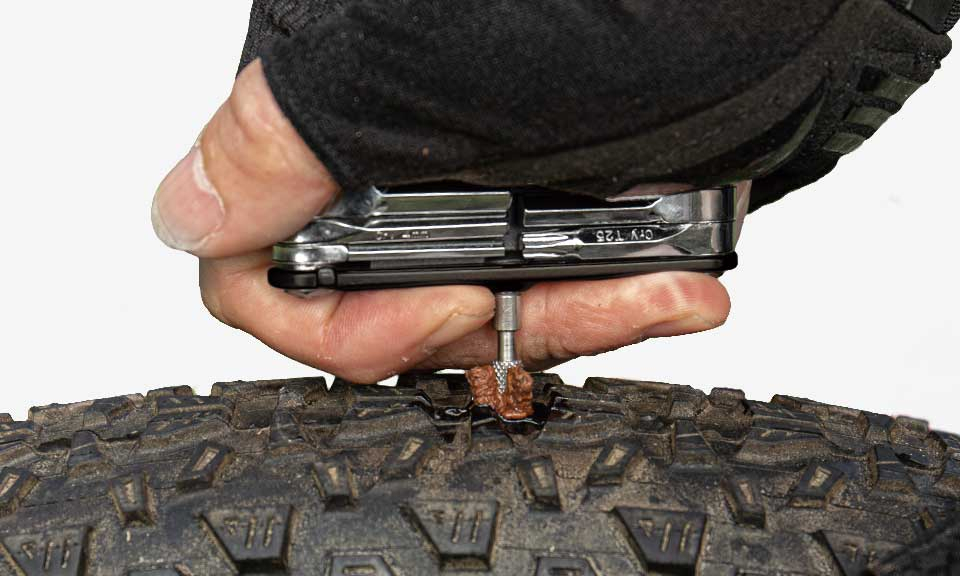 Aceasta cutie de scule rezistenta la intemperii contine un mini instrument pentru repararea anvelopelor fara camera cu 11 functii si o carcasa PlugBox cu 5 bucati de dopuri de 3,5 mm x 5 cm pentru repararea anvelopelor si intretinerea bicicletelor pe drum sau pe traseu