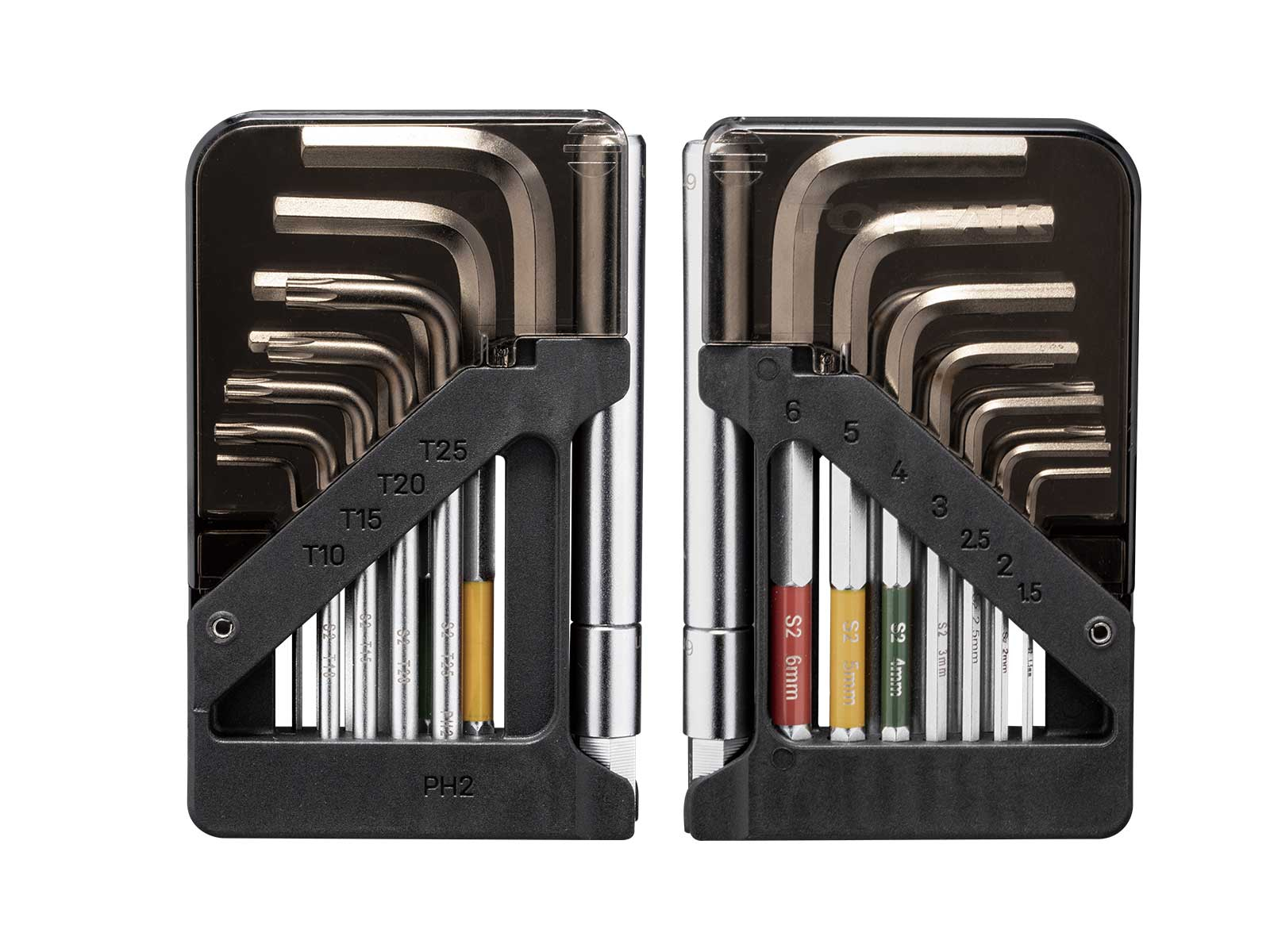 Set mini scule Topeak ToolCard TT2588Un set unic de 13 chei Allen cu capat sferic cu 15 functii si un set de chei Torx stocate intr-un corp pliabil inovator, suficient de mic pentru a incapea intr-un buzunar sau intr-o geanta de sa Bratul de extensie inclus adauga efect de parghie la uneltele hexagonale de 5 / 6 / 8 mm atunci cand este necesar170 g10.1 x 6.3 x 1.4 cm- Chei hexagonale de 1,5 / 2 / 2,5 / 3 / 4 / 5 / 6 mm,- Chei hexagonale de 8 mm, - Chei Torx T10 / T15 / T20 / T25, - Surubelnita Philips nr. 2