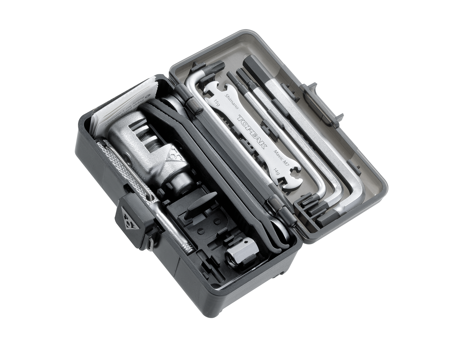 Set mini scule Topeak Survival GearBox, TT2543-07, Set multifunctional cu 23 de functii, ambalat intr-o carcasa de protectie personalizata care se monteaza pe orice cadru rotund sau tija de sa (ø25 mm - ø33 mm) cu o curea cu QR. Componenta: Imbus1.5/2/2.5/3/4/5/6mm Torx15/25 Tubulara 8 Chieie 8 Spite14/15/M7/Shi Cheie & Carlig Lant 9-10v 2 leviere 1 surubelnita Petice auto-adezive Distantier etrier Mini cutiuta nylon cu prindere rapida Velcro Greutate 233g