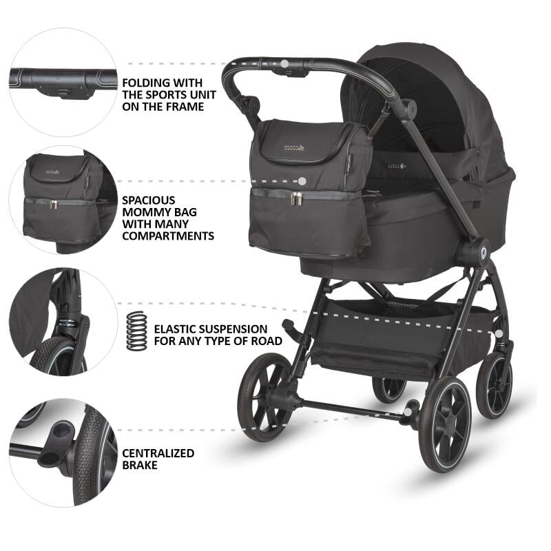 Coccolle Serry 3 în 1 vine cu un set complet de accesorii incluse: husă de picioare, husă de ploaie, plasă de insecte, geantă pentru mămici, adaptoare pentru scoica auto, pad suplimentar pentru unitatea sport. Tot ce îți trebuie pentru plimbări sigure și confortabile este deja în cutie.