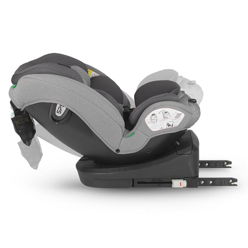 - 4 pozitii de ajustare pe spate cu fata la sensul de mers, dupa reglarea centurilor si a tetierei pentru inaltimea de 105 cm