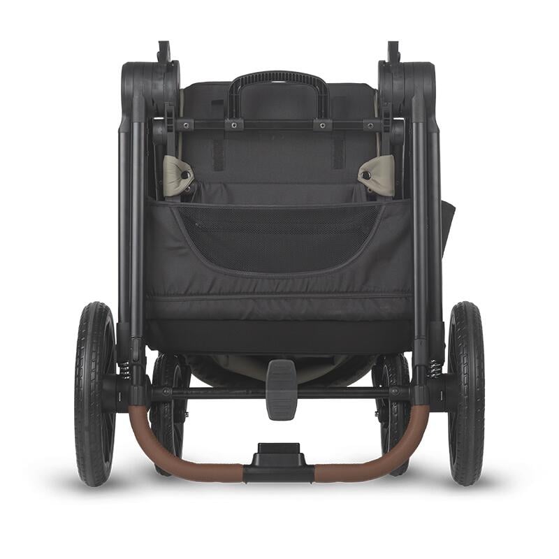 Plierea se poate face indiferent de orientarea unitatii sport pe cadru, fara a o indeparta, iar in urma acestui pas caruciorul are dimensiuni mai potrivite pentru depozitare sau transport.