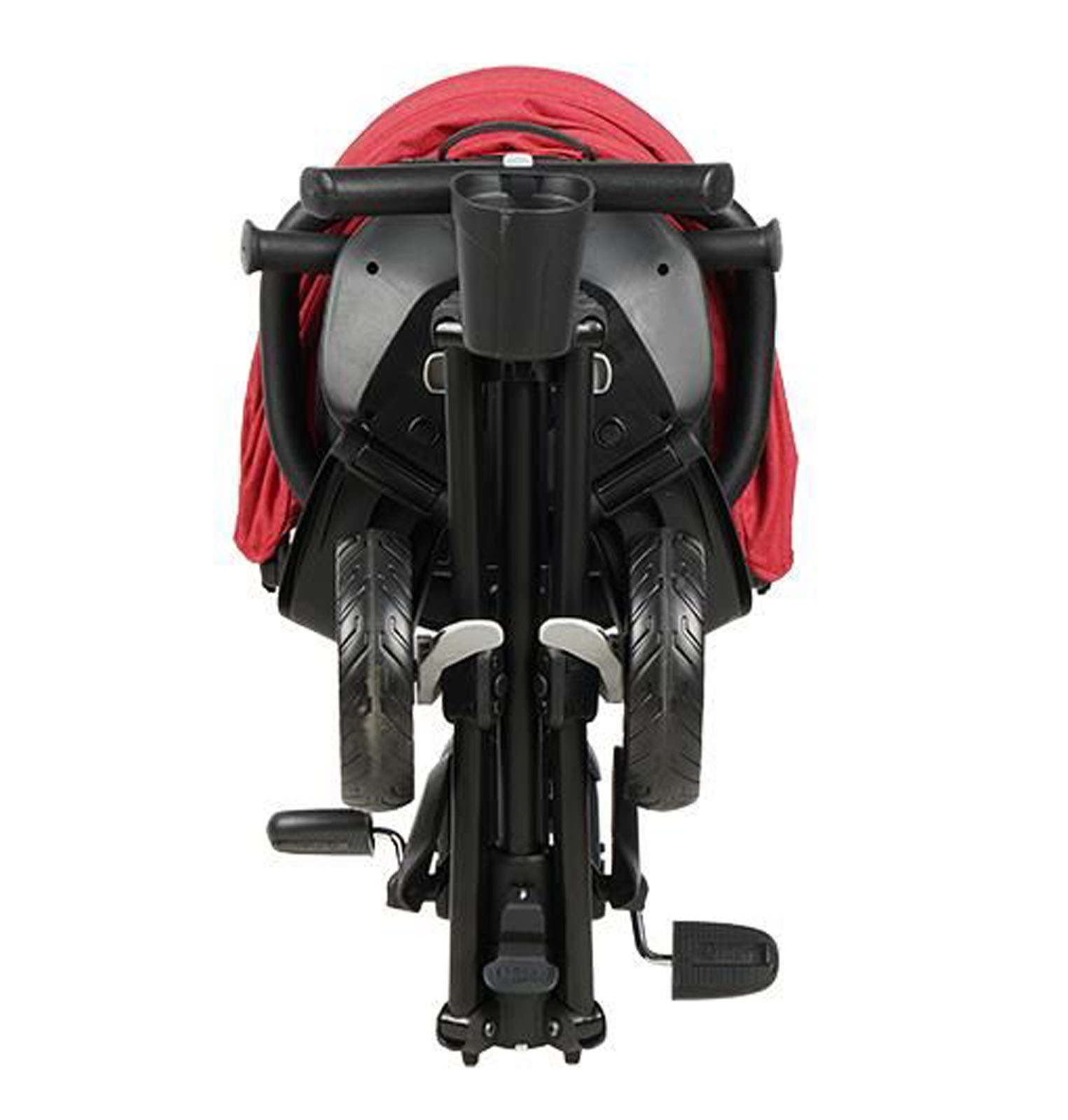 Tricicleta de lux are un cadru din aluminiu, ușor și complet pliabil, astfel încât tricicleta poate merge oriunde.