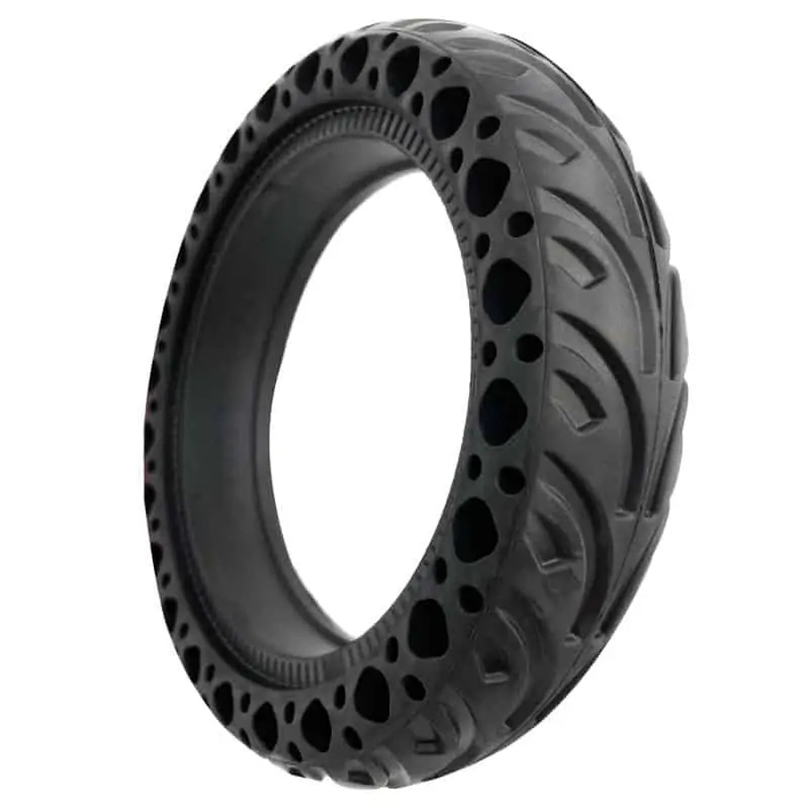 Anvelopa este plina, nu necesita camera, model cu gauri perforate care absorb mai bine socurile si nu mai distrug bucsele de cauciuc ale trotinetei.