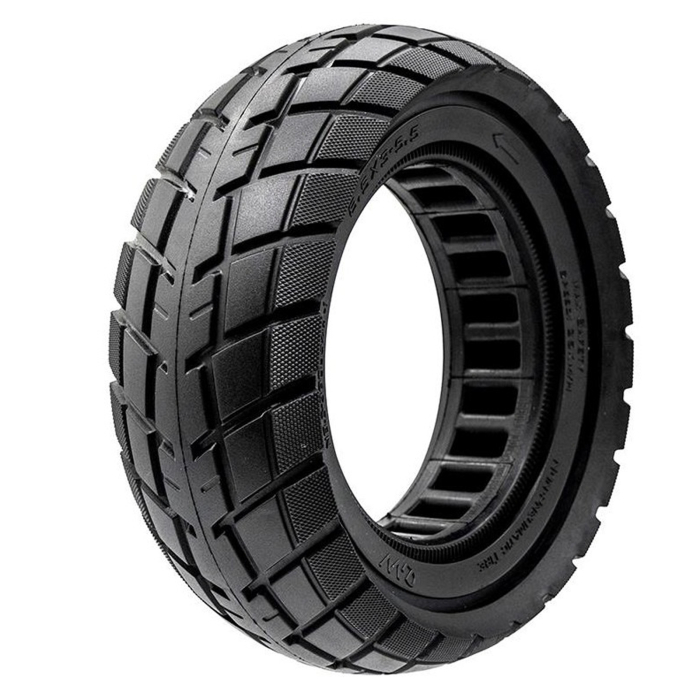 Anvelopa noastră solidă este concepută pentru a face față terenurilor dificile, fără riscul de pană.