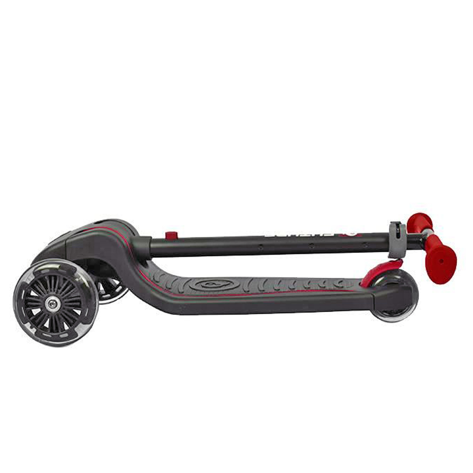 Trotineta se pliaza usor, devenind ultra-compacta astfel ca va poate insoti in orice aventura. Manerul se ajusteaza pe inaltime in 3 pozitii, produsul fiind recomandat in intervalul de varsta 3-8 ani sau pana la greutatea maxima de 50 kg. Baza stabila si ghidonul au invelis anti-alunecare, iar roata din spate este dotata cu frana pentru a putea permite utilizarea trotinetei in conditii de siguranta si control. Functia de iluminare LED poate fi utilizata in 3 moduri diferite: lumina mereu pornita, iluminat intermitent intr-o frecventa redusa sau iluminat intermitent intr-o frecventa alerta; aceasta functie va permite copilului sa isi aleaga modul de iluminare care ii va fi pe plac in functie de dispozitia sa. Functia de pivot a rotilor din fata ii permite copilului sa faca miscari de freestyle si sa experimenteze dupa bunul sau plac, fara sa ii puna in pericol siguranta.