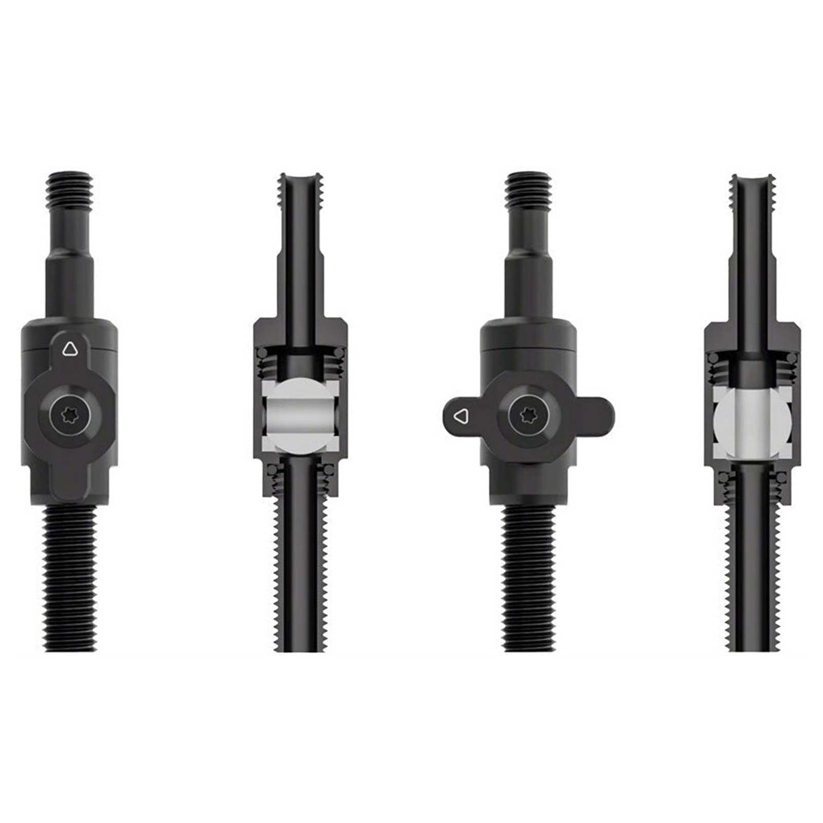 Design fără nucleu și supapă cu bilă: Cu un design intern „straight through” și o supapă cu bilă, Big Bore oferă un flux maxim de aer. Acest lucru înseamnă că poți umfla rapid anvelopele și adăuga lichid de etanșare mult mai repede comparativ cu supapele Presta obișnuite.